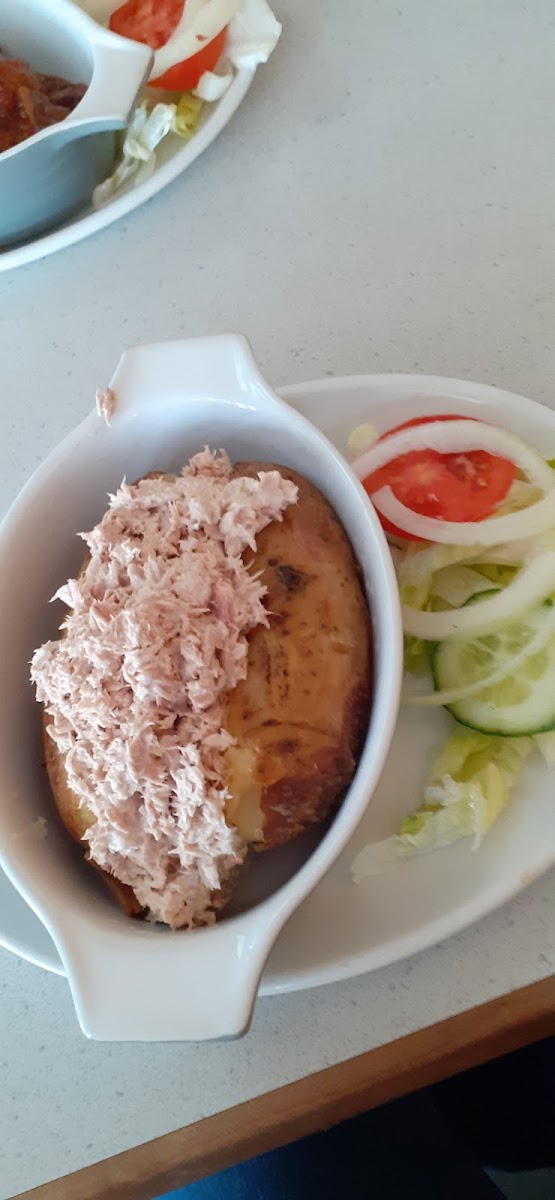 Cheap and cheerful Very busy, reminded me of if an English cafe was in Benidorm Bring cash Costed us around £13 for a breakfast, beans and cheese jacket potato, coffee and can of diet coke Much better potato than the new £7 shop round the corner ! £4.25 for my beans and cheese with a salad