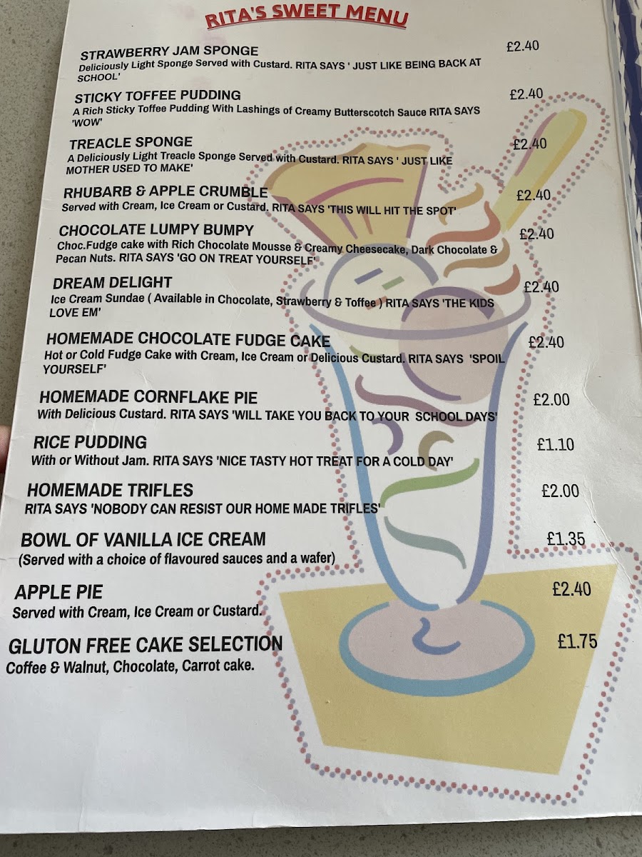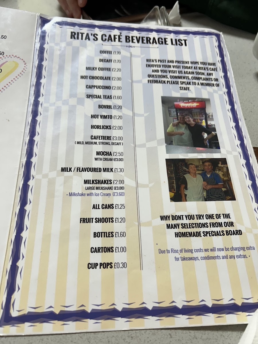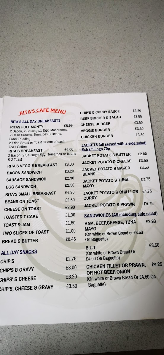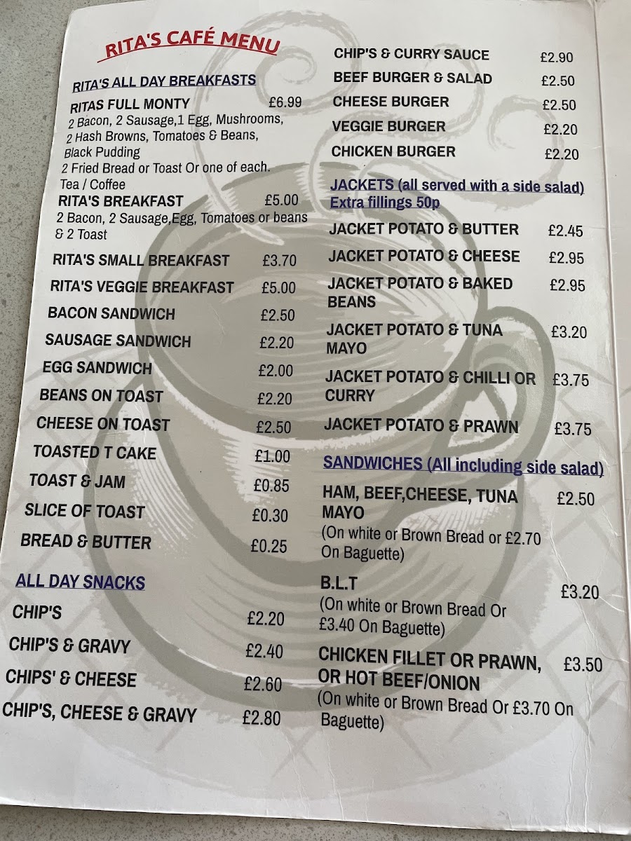Rita’s Cafe serves up a straightforward, no-fuss menu rooted in classic breakfast and café staples. Here, you’ll find comforting dishes crafted to match the relaxed, everyday atmosphere of a local breakfast spot. Whether starting the day with a traditional Full Breakfast or dropping by for a simple hot drink and a piece of homemade trifle, the menu offers familiar options that feel both satisfying and unpretentious.